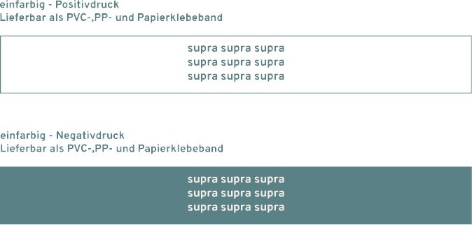 Da wir in Köln über eine erstklassige Infrastruktur mit modernen Druckmaschinen verfügen, können wir ein weitgefächertes Spektrum an Aufträgen und Anfragen realisieren. In den meisten Fällen setzen wir die Bedruckung von Klebebändern mittels des sogenannten Positivdrucks um. Bei diesem Verfahren wird ausschließlich das grafische Motiv in der gewählten Farbe auf die Oberfläche des Klebebands gedruckt. Beim Negativdruck dagegen wird die Oberfläche des Klebebands vollflächig bedruckt und das grafische Motiv ausgespart. Bitte beachten Sie die geltenden Mindestbestellmengen.